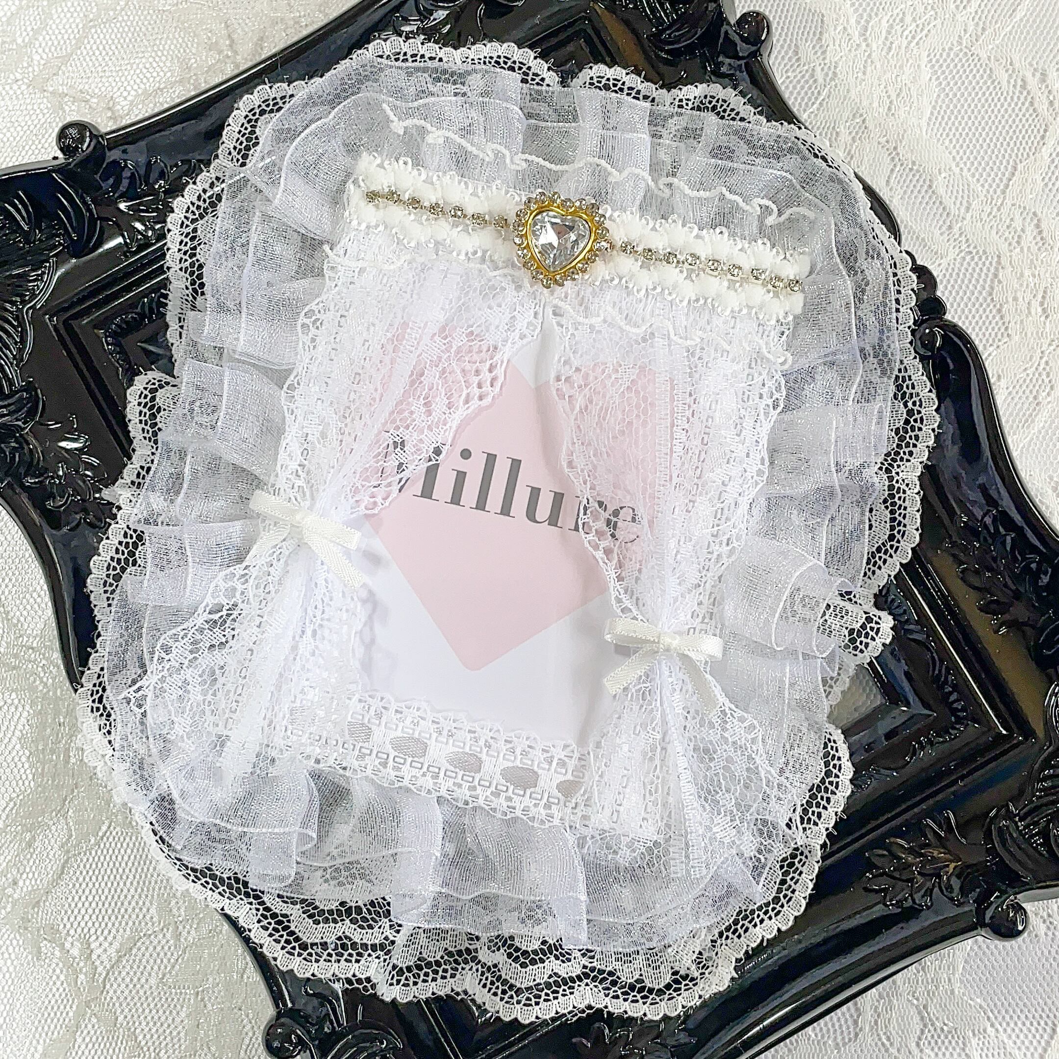 白レースとカラーフリルを重ねて